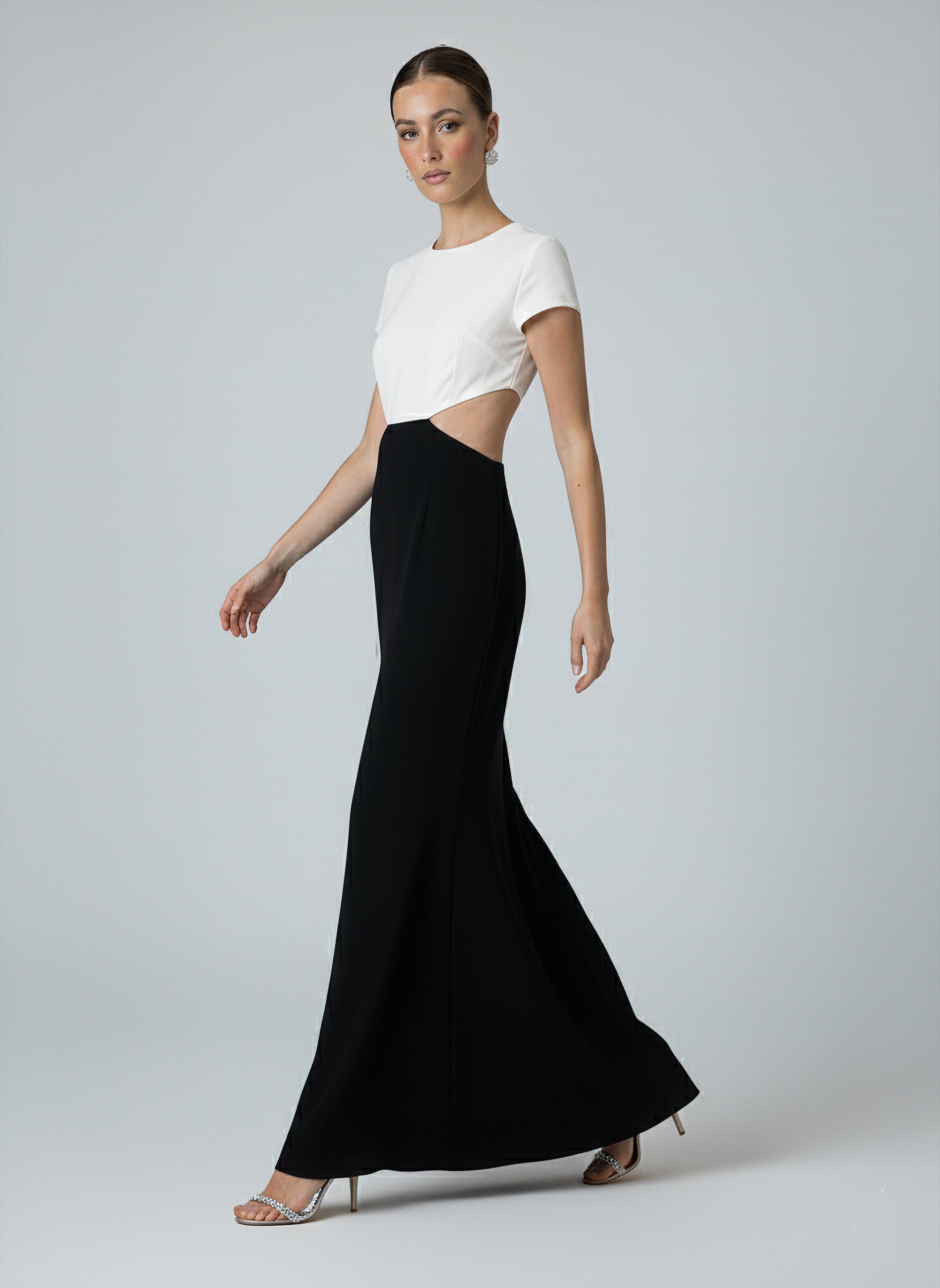 - Full-length two-tone dress