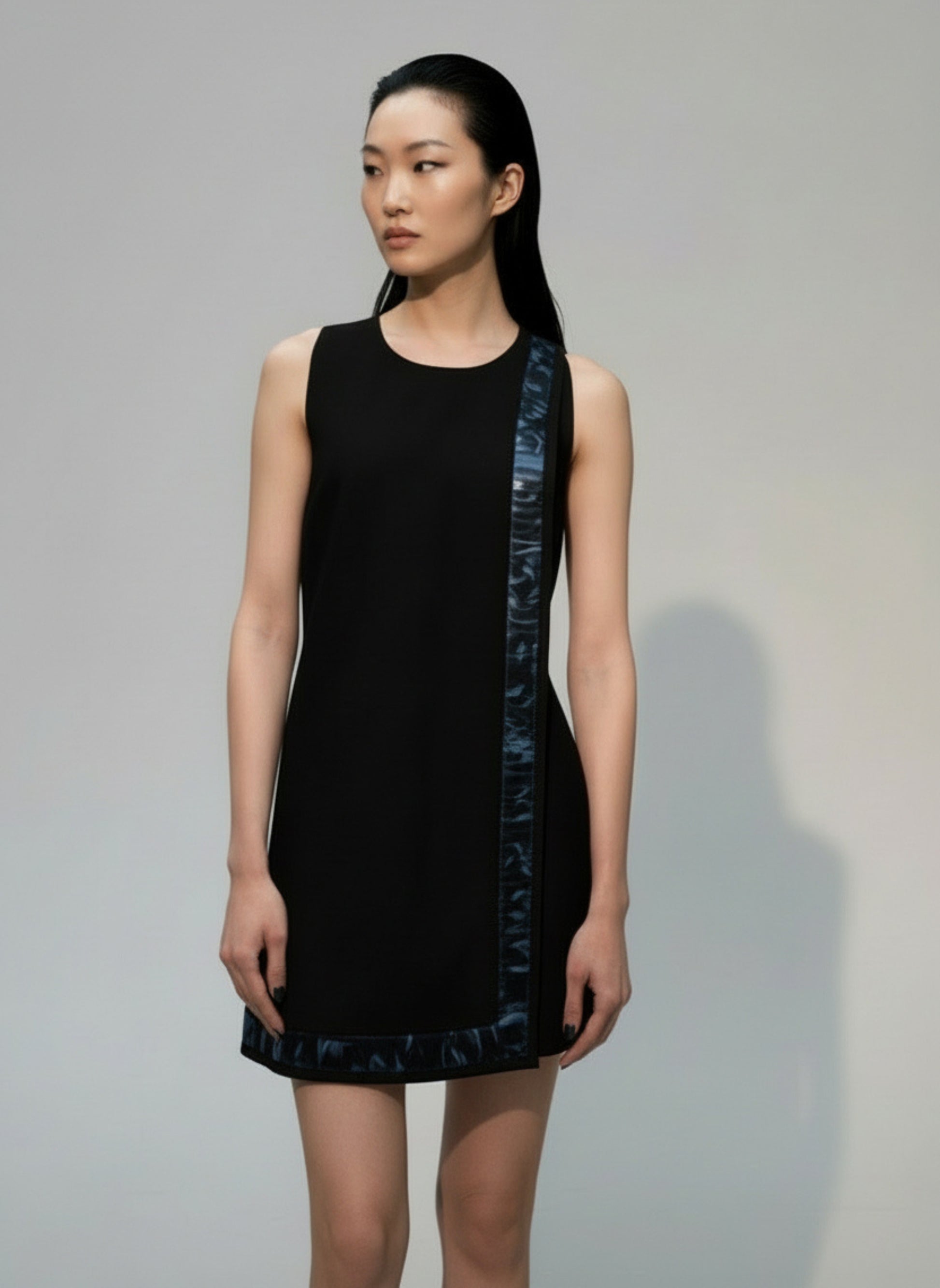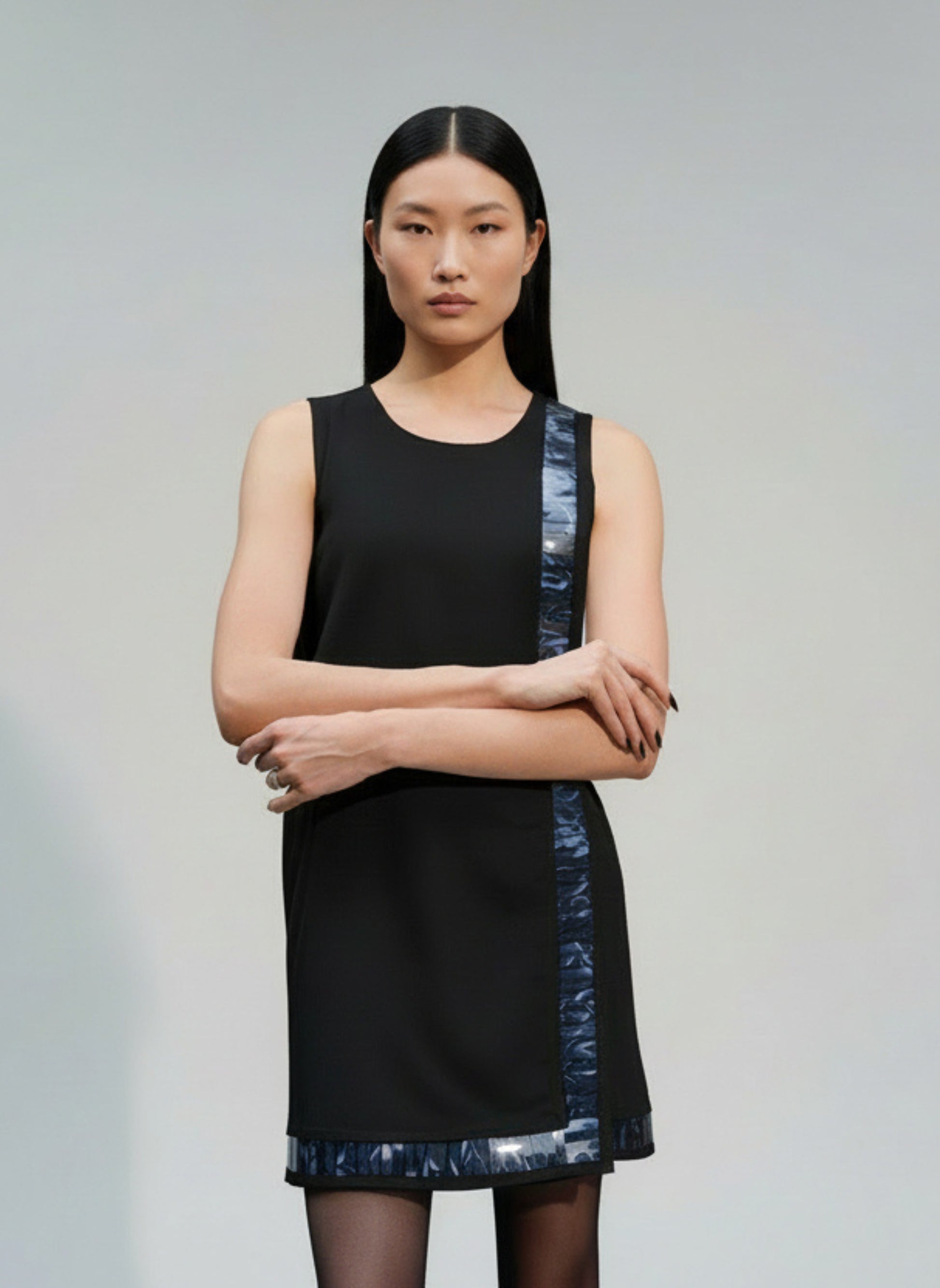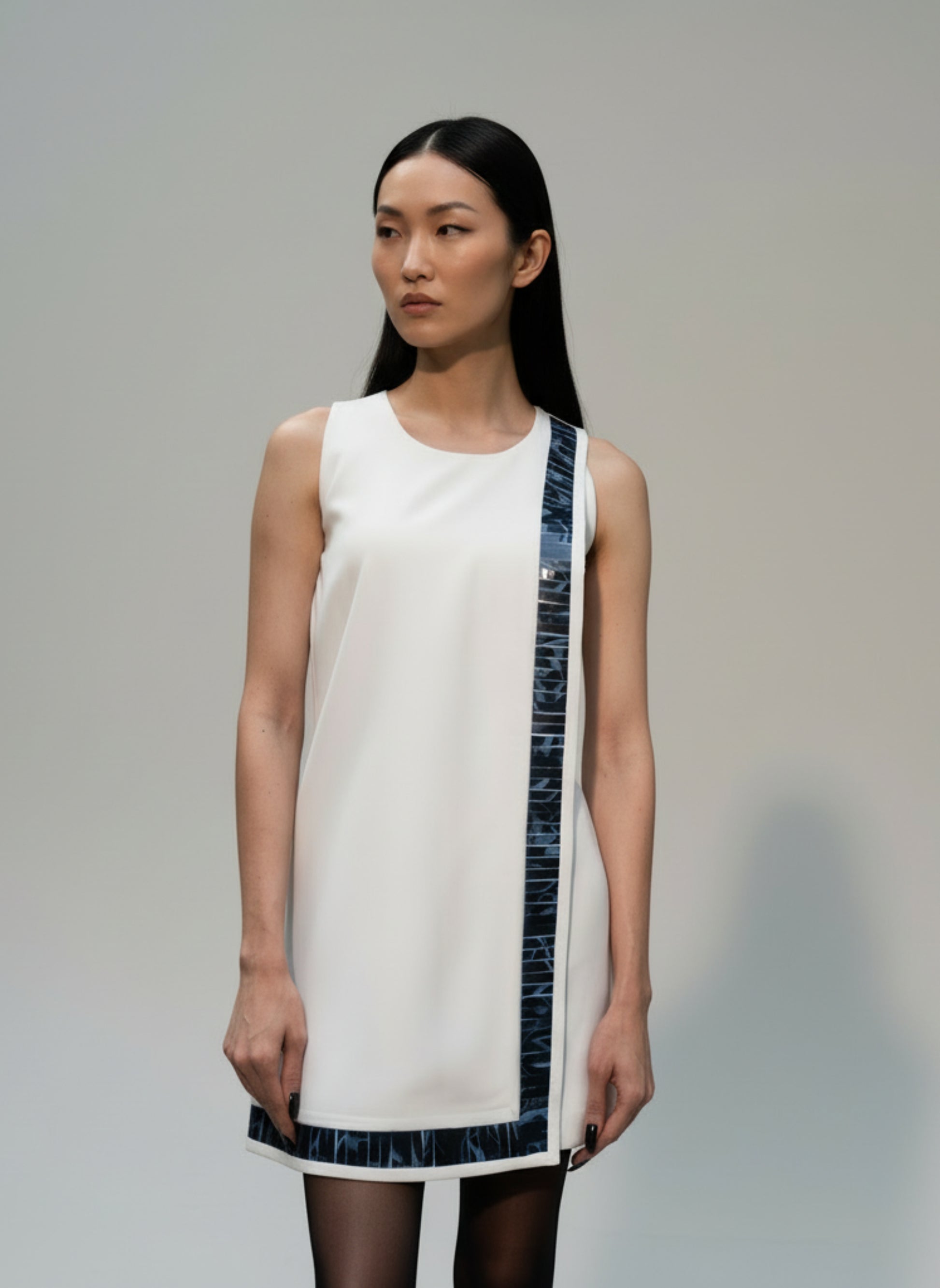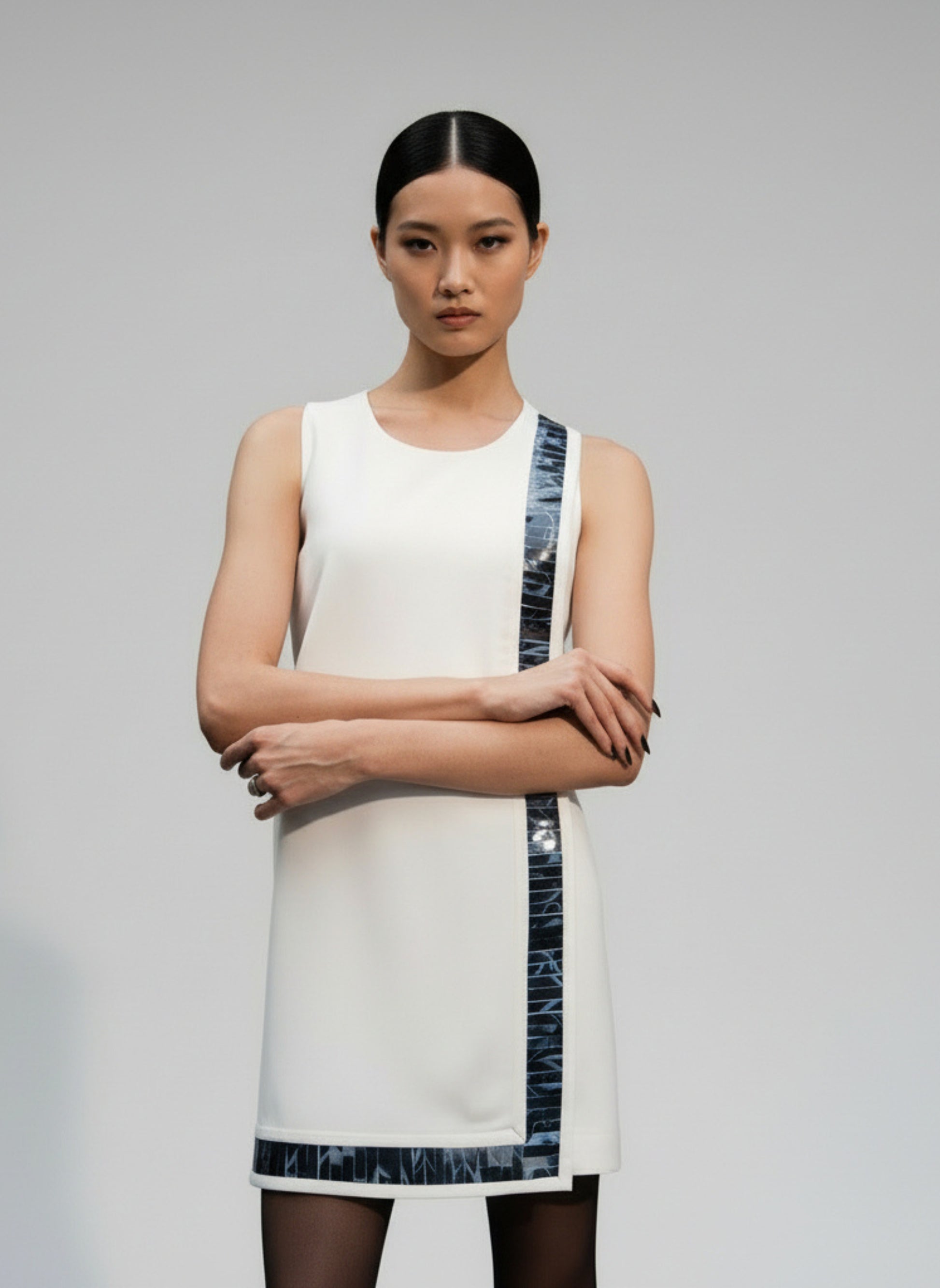 Elevate your style with this stunning overlap dress from Agahmi. Crafted from high-quality polyester, this sleeveless design features a flattering round neck and a body-hugging fit that accentuates your curves. The back zip closure ensures easy wear, while the above-knee length offers a chic, modern look. Enhanced with unique X-ray sheet detailing, this dress combines avant-garde elements with timeless elegance, making it perfect for both casual outings and special occasions.