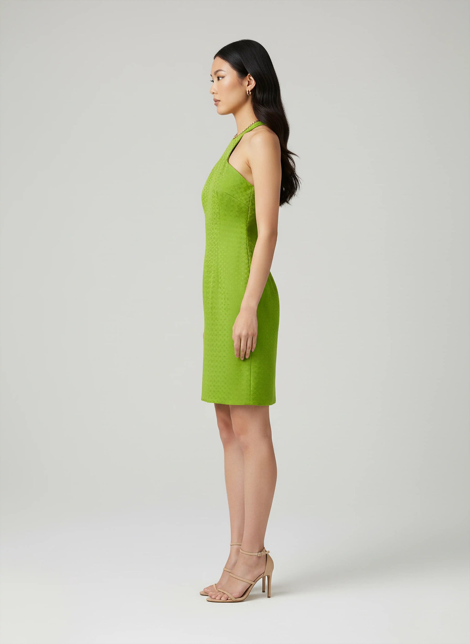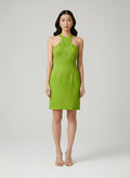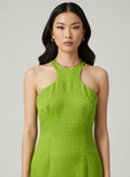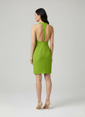 A blend of innovation and elegance, this Agahmi halter-neck dress is crafted from luxurious corn fabric with a subtle self-motif texture. Featuring a fitted silhouette, halter neckline with hook fastening, and open back, it combines style and ease with a side zipper. Classy, confident, and modern—perfect for making a bold, graceful statement.