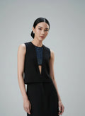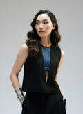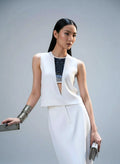 This striking sleeveless top from Agahmi blends classic and avant-garde elements for a unique look. Made from soft polyester, it features a round neck and a buttonhole closure at the back for an easy, comfortable fit. The front is adorned with a meticulously crafted X-ray weave mat, creating an illusional V neckline that adds a sense of depth and dimension. Cutout detailing elevates the design, offering a fresh take on modern elegance. With a regular fit, this piece is perfect for making a subtle yet bold statement.