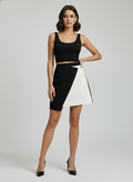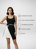 Make a bold statement with this striking asymmetrical skirt from Agahmi. Crafted from high-quality polyester, this skirt features a captivating black and white contrast that adds visual interest to any outfit. The slim fit design flatters your silhouette, while the side zip closure ensures a secure and comfortable fit. With its unique style, this skirt effortlessly blends contemporary chic with classic elegance, making it a versatile addition to your wardrobe for both day and evening looks.
