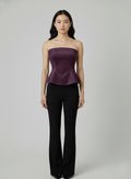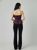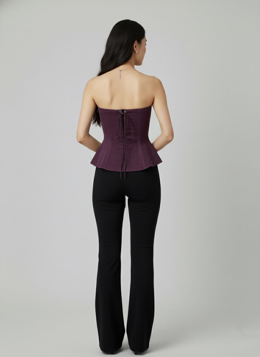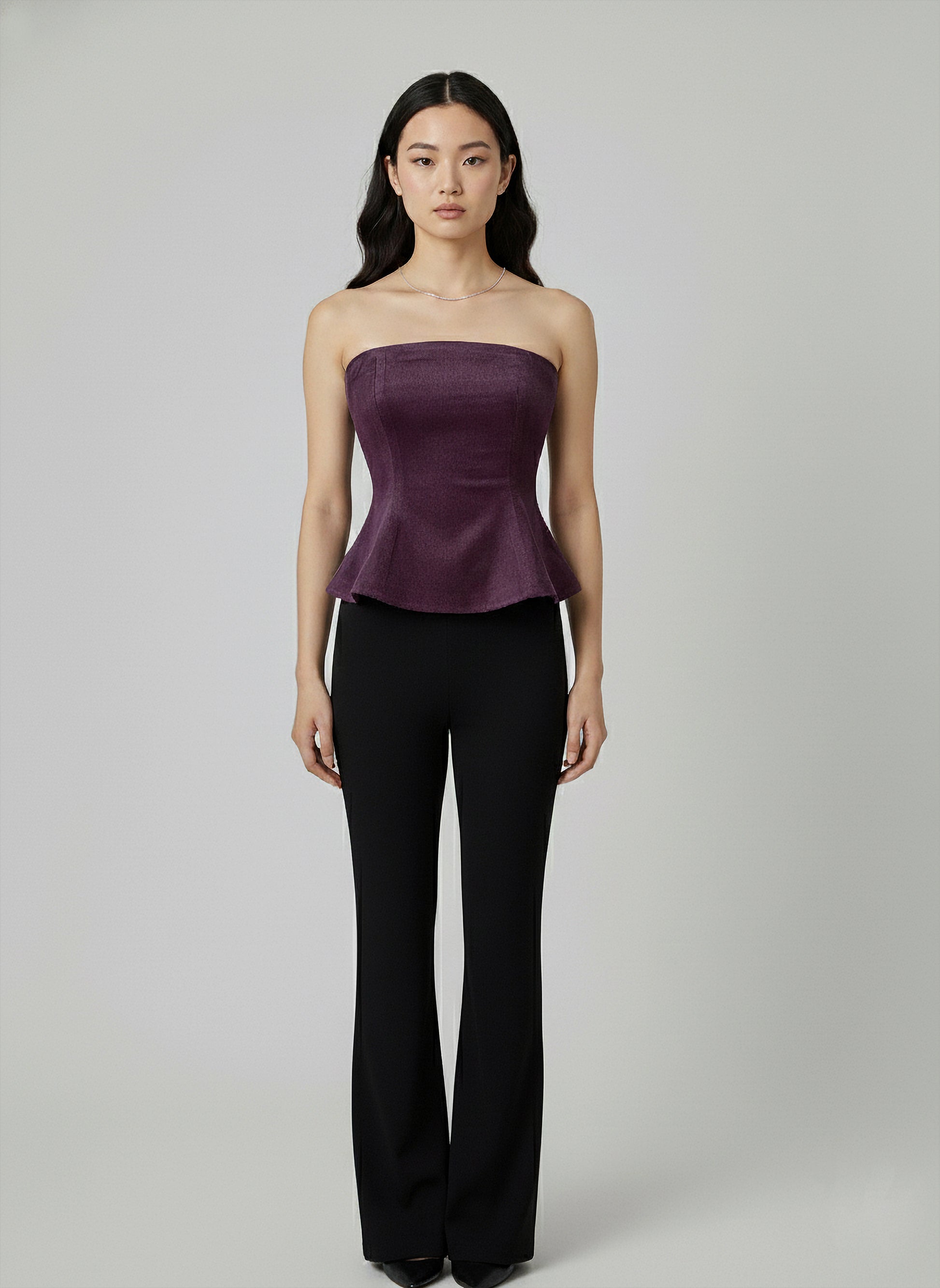 A refined blend of structure and innovation, this Agahmi tube peplum top is crafted from premium orange-peel fabric with a smooth, elevated finish. The fitted bodice flares into a subtle peplum, creating a flattering silhouette. A back drawstring tie-up ensures a secure, customizable fit, complemented by a sleek concealed zipper. Effortless, modern, and statement-ready.