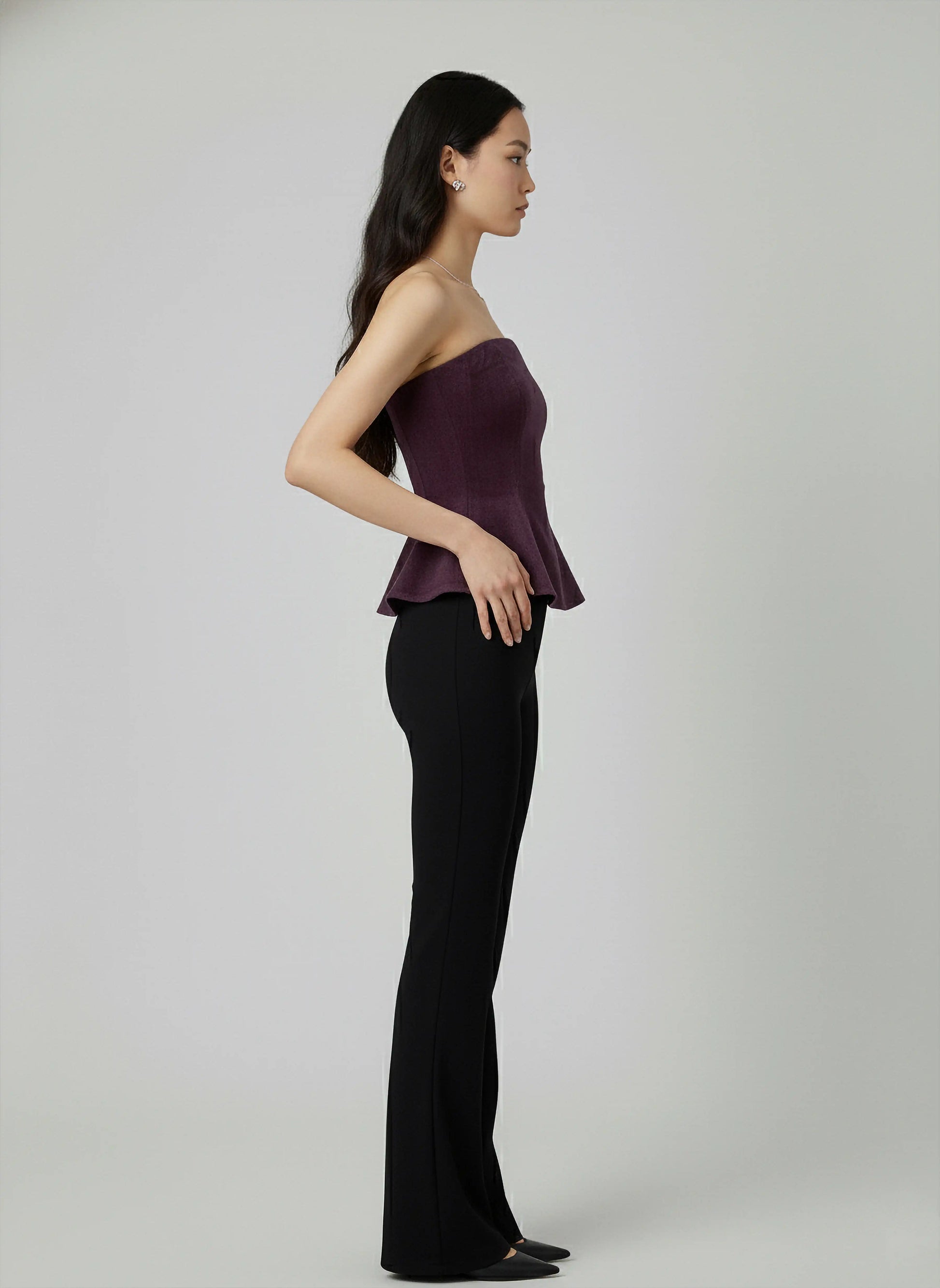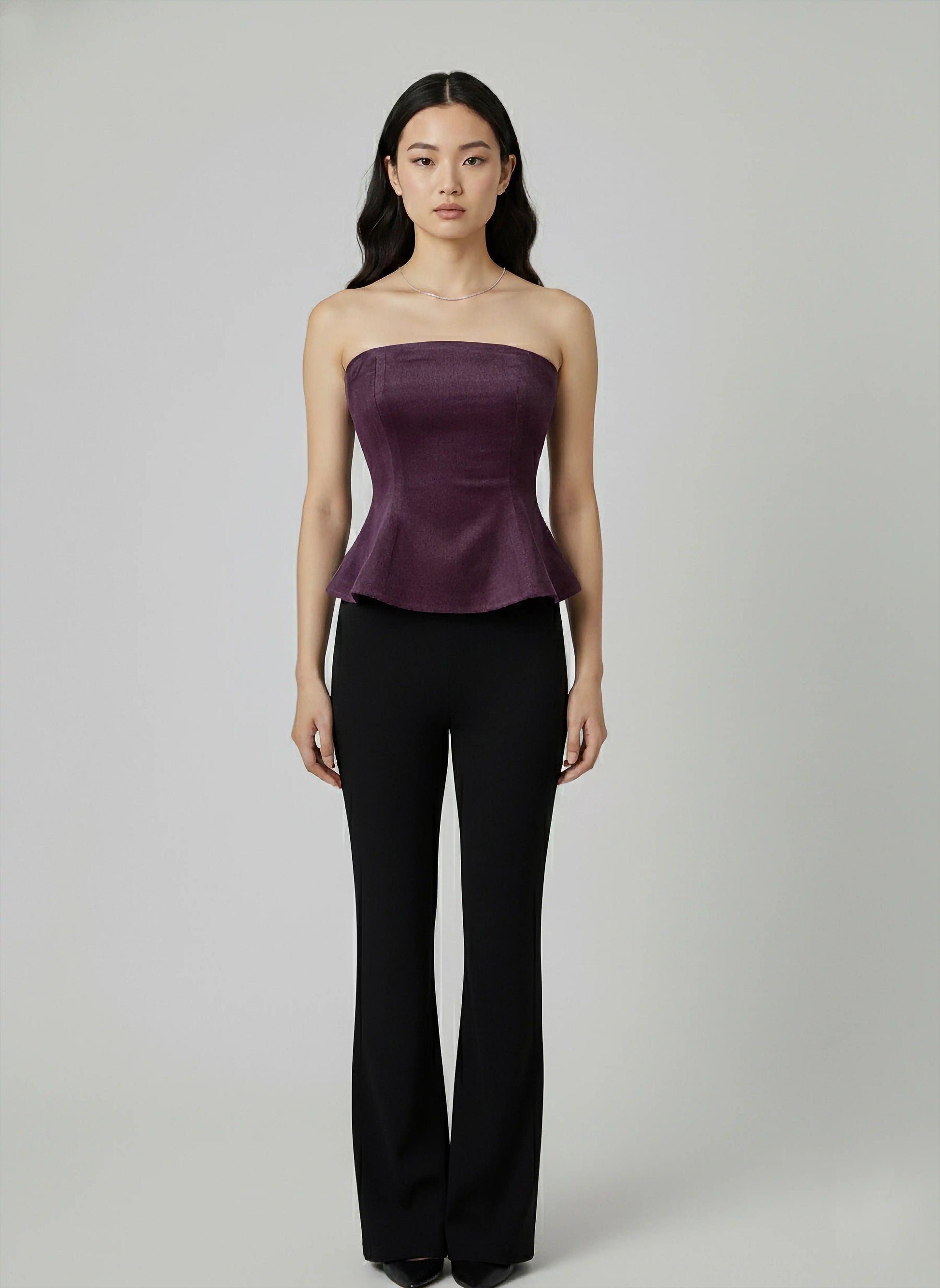 Strapless tube silhouette with peplum flare