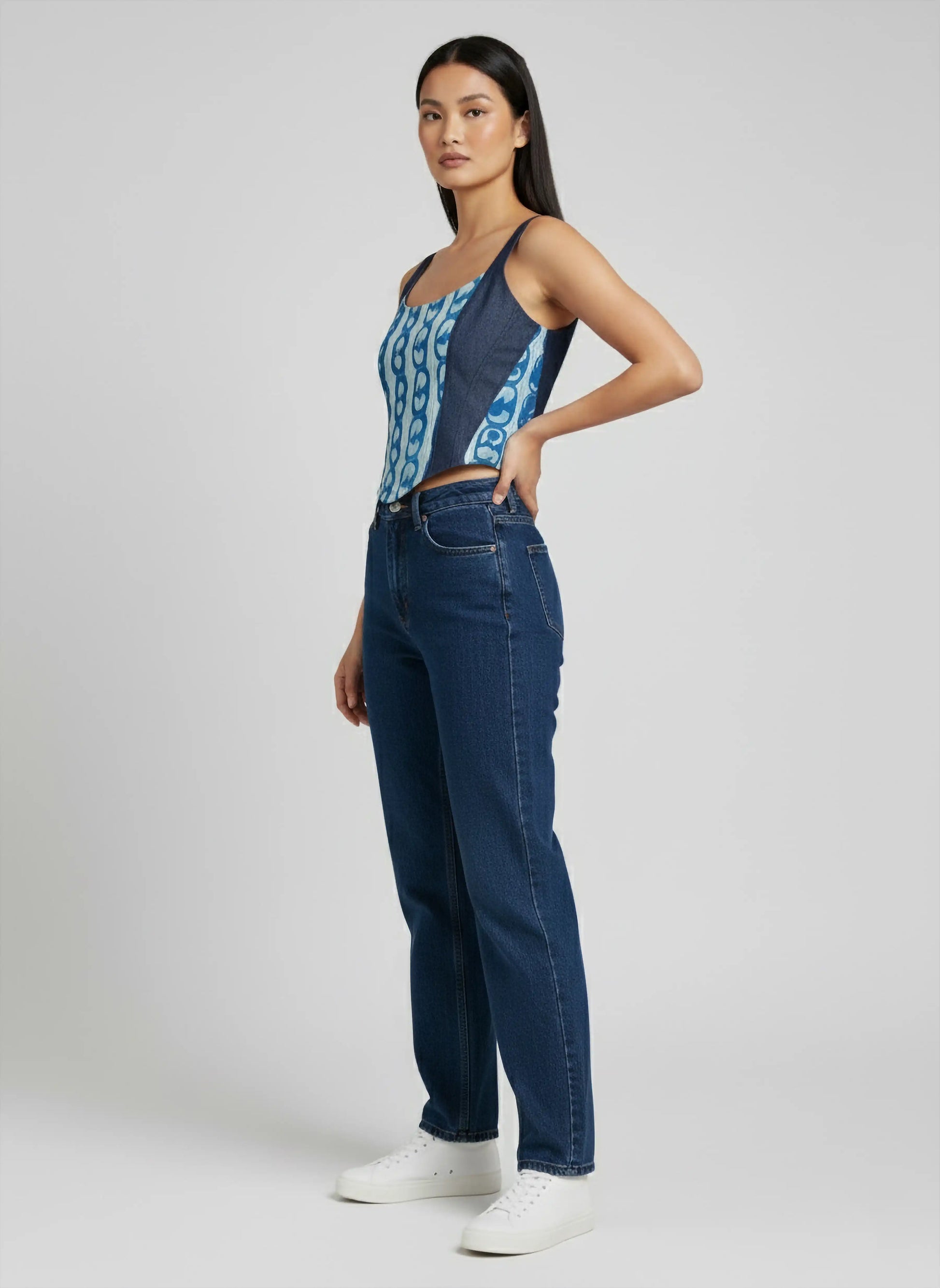 Crafted in cotton and denim, this Agahmi top blends modern form with mindful artistry. The cyanotype prints—created using X-ray sheets—turn scientific precision into wearable expression. With its multi-panel silhouette and smocked back, it moves with you, offering both shape and ease. Pair it with denim, skirts, or tailored pants for an effortlessly elevated, all-day look.